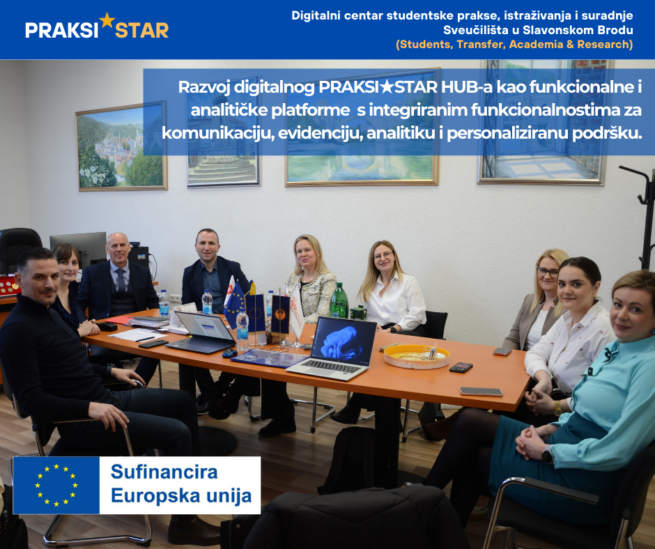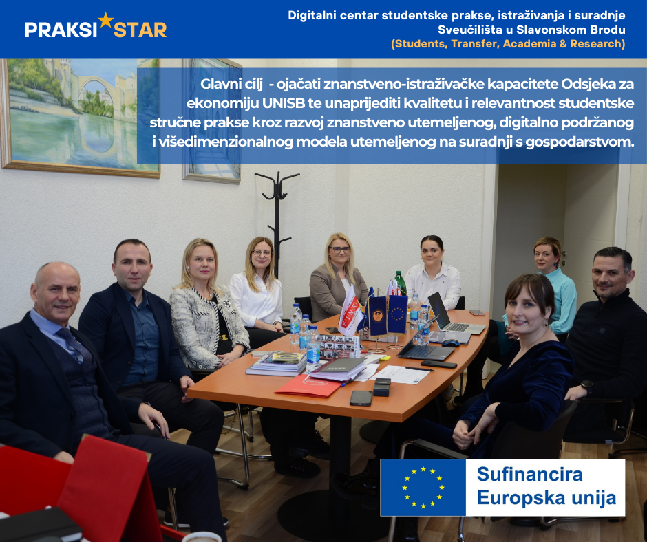 Projekt PRAKSI★STAR usmjeren je na jačanje znanstvenih kapaciteta i suradnje s gospodarstvom kroz razvoj digitalno podržanog modela studentske prakse na Odsjeku za ekonomiju Sveučilišta u Slavonskom Brodu.